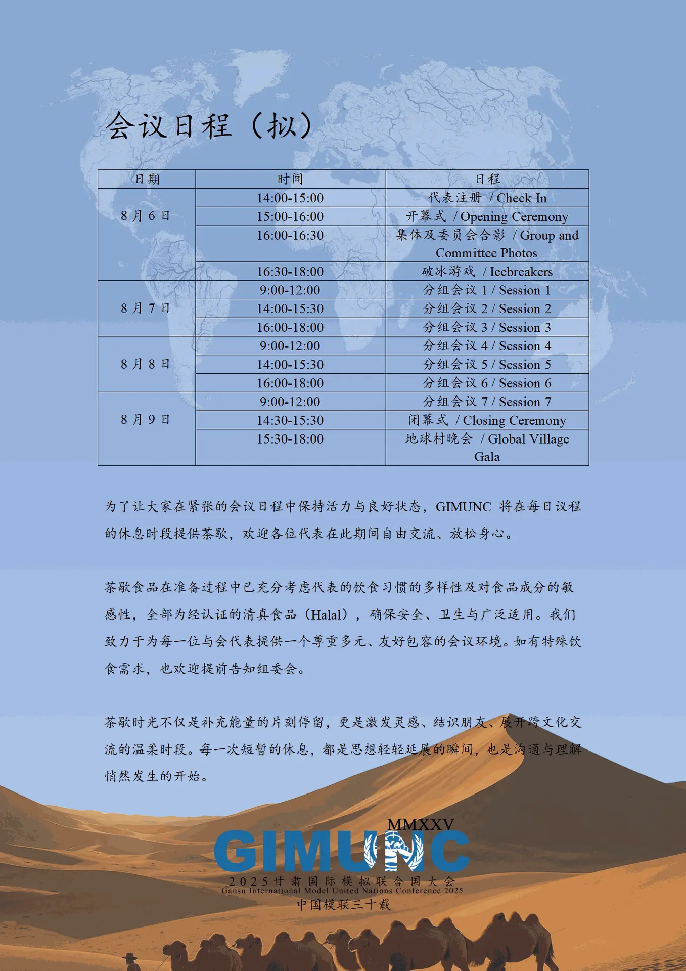 为了让大家在紧张的会议日程中保持活力与良好状态,GIMUNC 将在每日议程的休息时段提供茶歇,欢迎各位代表在此期间自由交流、放松身心。